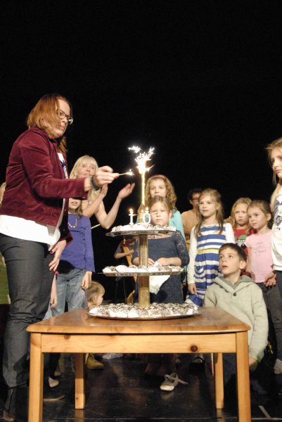 Zagyvai Dóri meggyújta a gyertyát a tortán